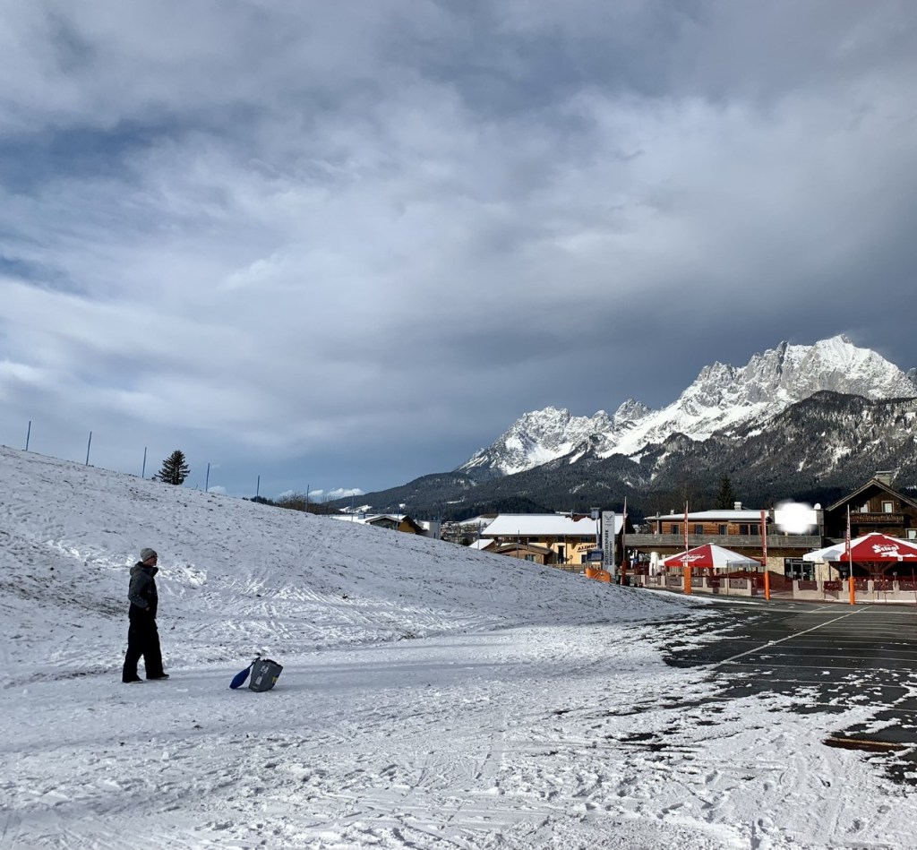 The ski lifts/slopes have just opened up, but hotels, restaurants (and just about everything else) are shut. Whilst buying my lift pass I snapped this photo. The pistes are looking good (mostly from man-made snow), but there is little snow in our valley – so no cross country skiing on my doorstep, yet. The plus side is I can walk comfortably in the valley and enjoy the snow covered mountain views, and when I want to (i.e. need the exercise) walk up the mountains and enjoy the feel of snow under my (crampon wearing) shoes.