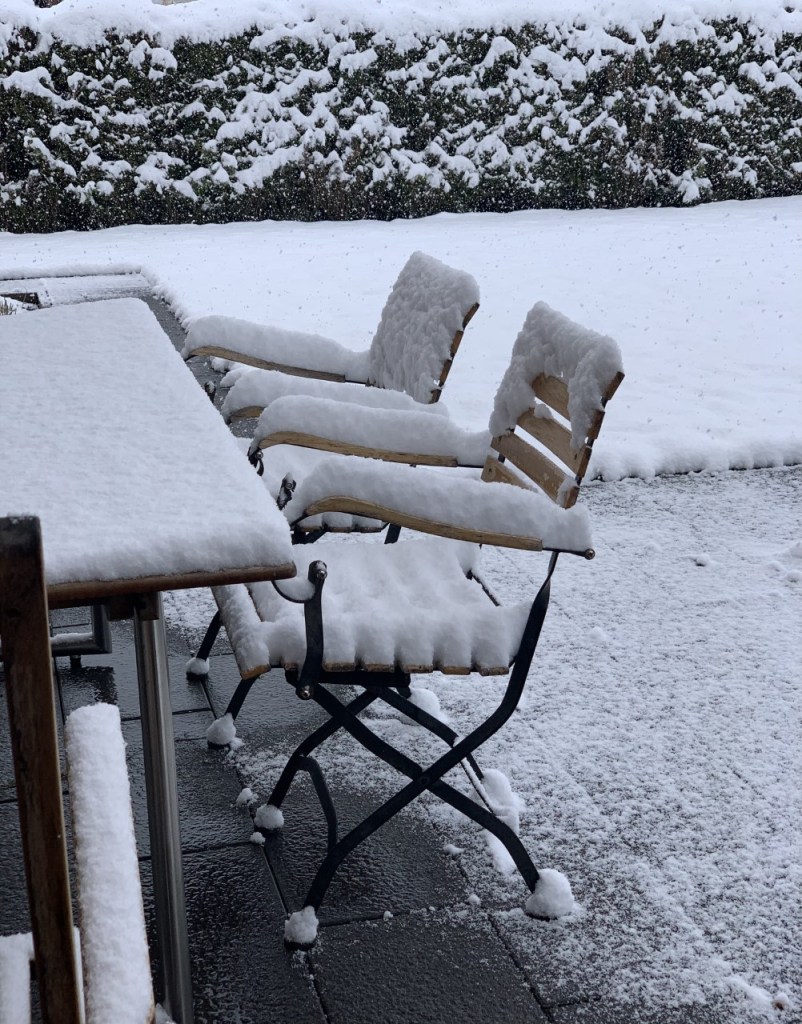 We’ve had so much snow this week I’ve hardly ventured out into the cold – good excuse for reading though 😊. My garden reading spot was too cold, so mostly it was done indoors – which seemed similarly cold as the heating got turned off when the weather turned “shorts and t-shirt warm” a week ago. I took this photo in early stages of the snowfall; later there was about 18″. Fortunately it has now turned warmer, which has cheered me, and the birds!, up.