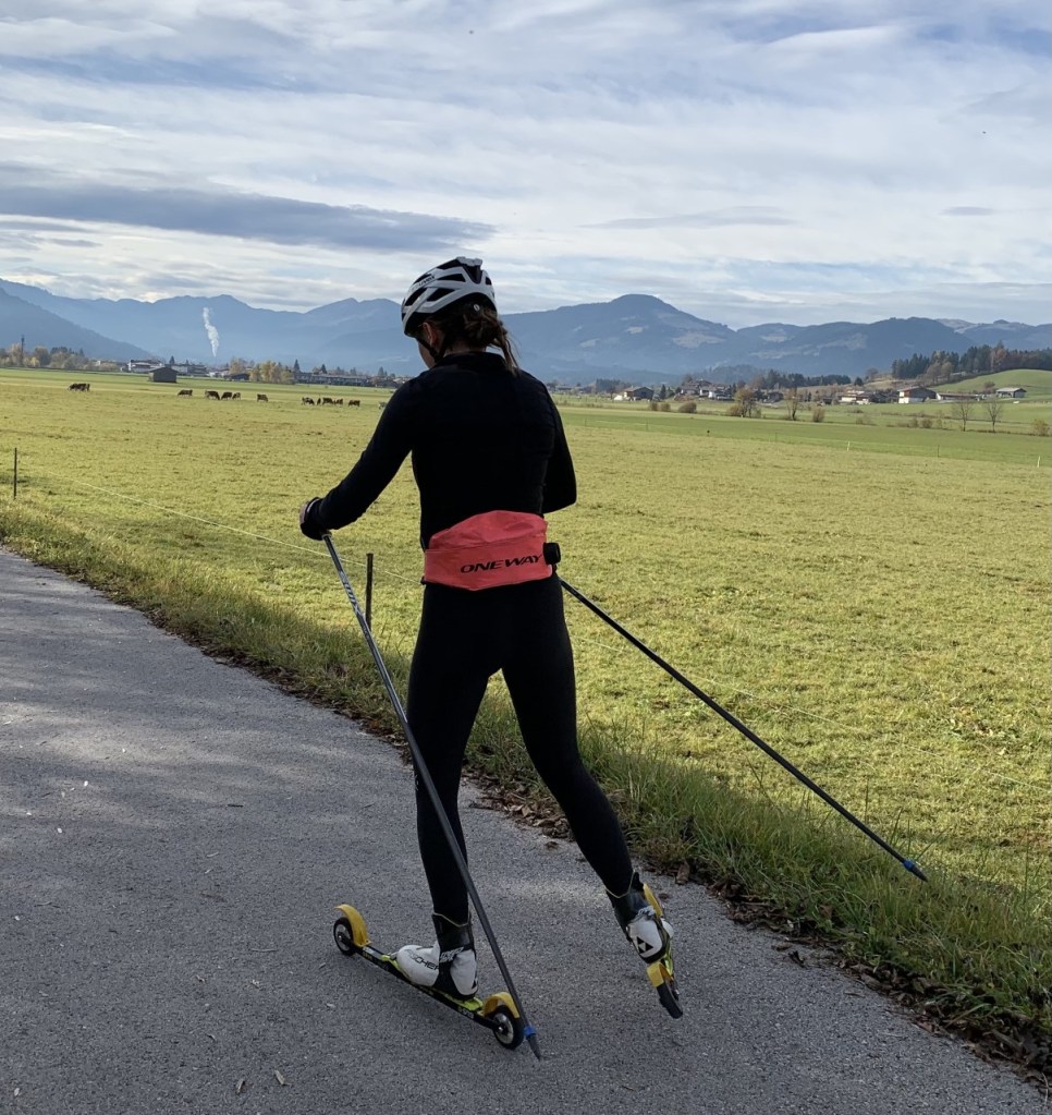 Snow has arrived to half way down the mountains so I am keeping to the valley, where people training for the cross country skiing season often whizz pass me.