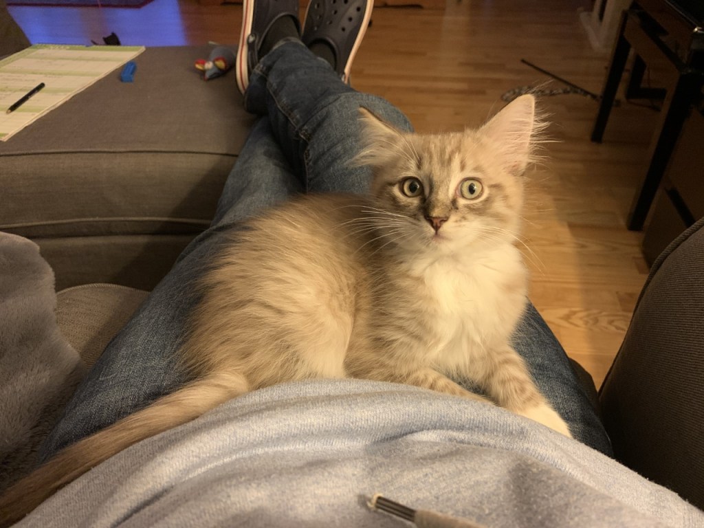 I have been astounded at the amount of time and energy (day and night!) a new kitten takes up.  Rex has moved in, and is a bundle of energy, he doesn’t have a walk mode, he only does sprint, climb, attack and cuddle.   He is wonderful!